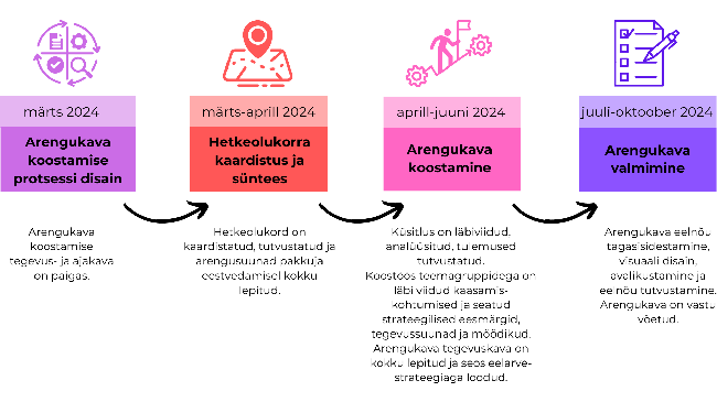 Suvekuudel toimub esimese arengukava tööversiooni kirjutamine, et augustis selle põhjal aruteludega edasi minna. Arengukava koostab MS Inspire OÜ.
