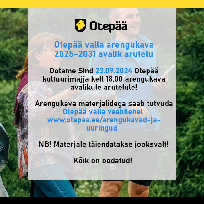 Ettepanekute laekumise tähtaeg on 07.10.2024, ettepanekud tuleb saata vald@otepaa.ee