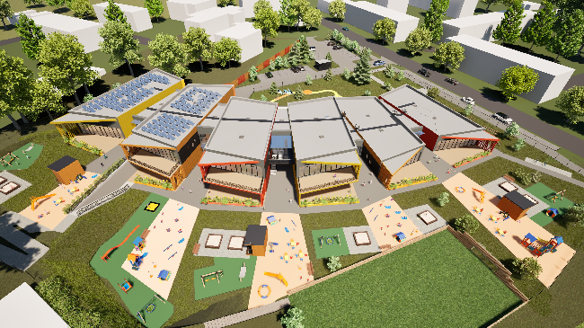 Lasteaed on planeeritud kaasaegsete lahendusega ning projekt on koostatud nii, et ehitada on võimalik kahes etapis - I etapis 6 rühmale ja II etapis 3 rühmale hooned.