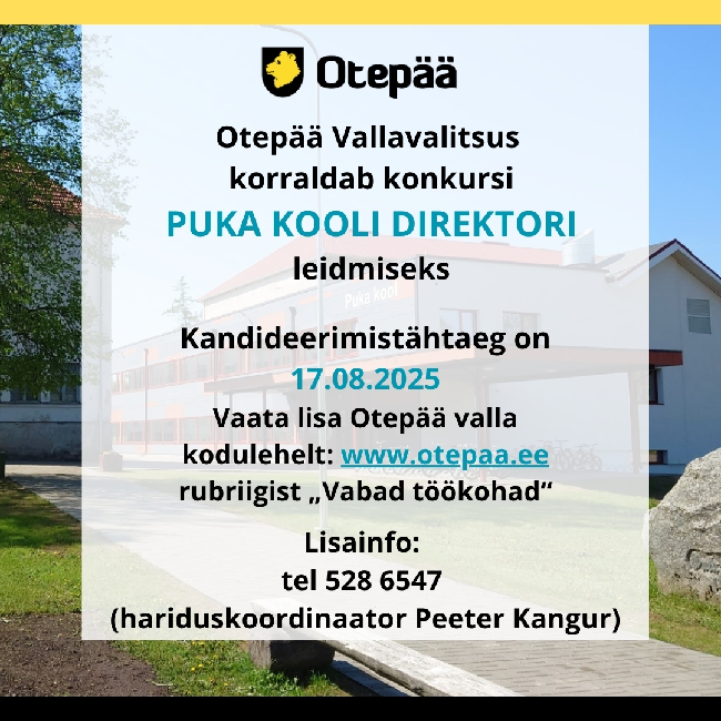 Otepää Vallavalitsus kuulutab välja konkursi Puka Kooli direktori ametikoha täitmiseks (konkurss lõppenud)
